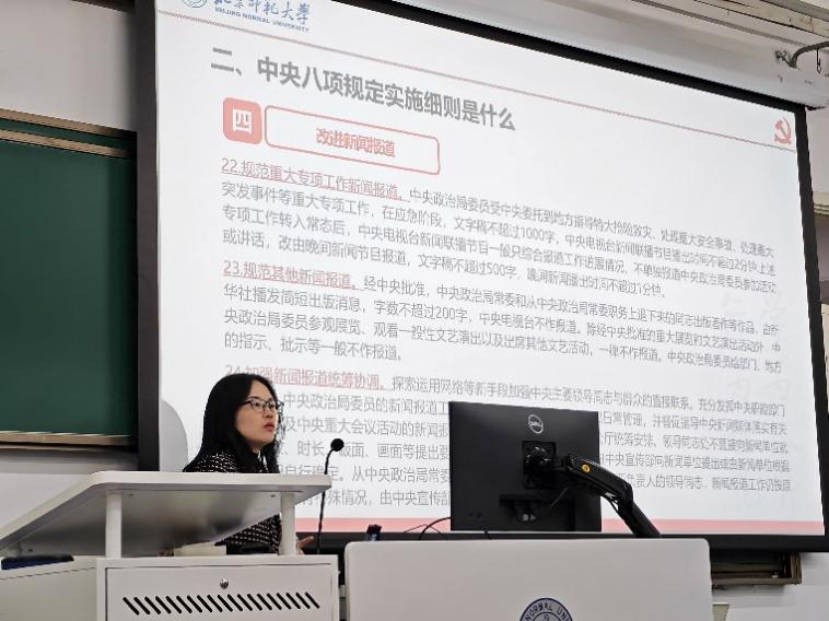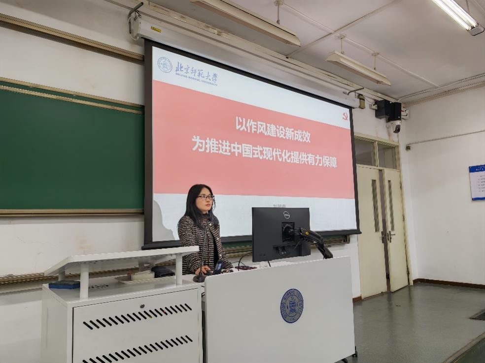 讲座伊始,刘芳南老师紧密结合当下全党正在开展的深入贯彻中央八项规定精神的学习教育工作,强调作风建设对于推进中国式现代化的关键作用,并进一步阐述了本次学习教育工作的紧迫性与重要性,旨在让大家了解党的工作重点以及作风建设的重大意义。