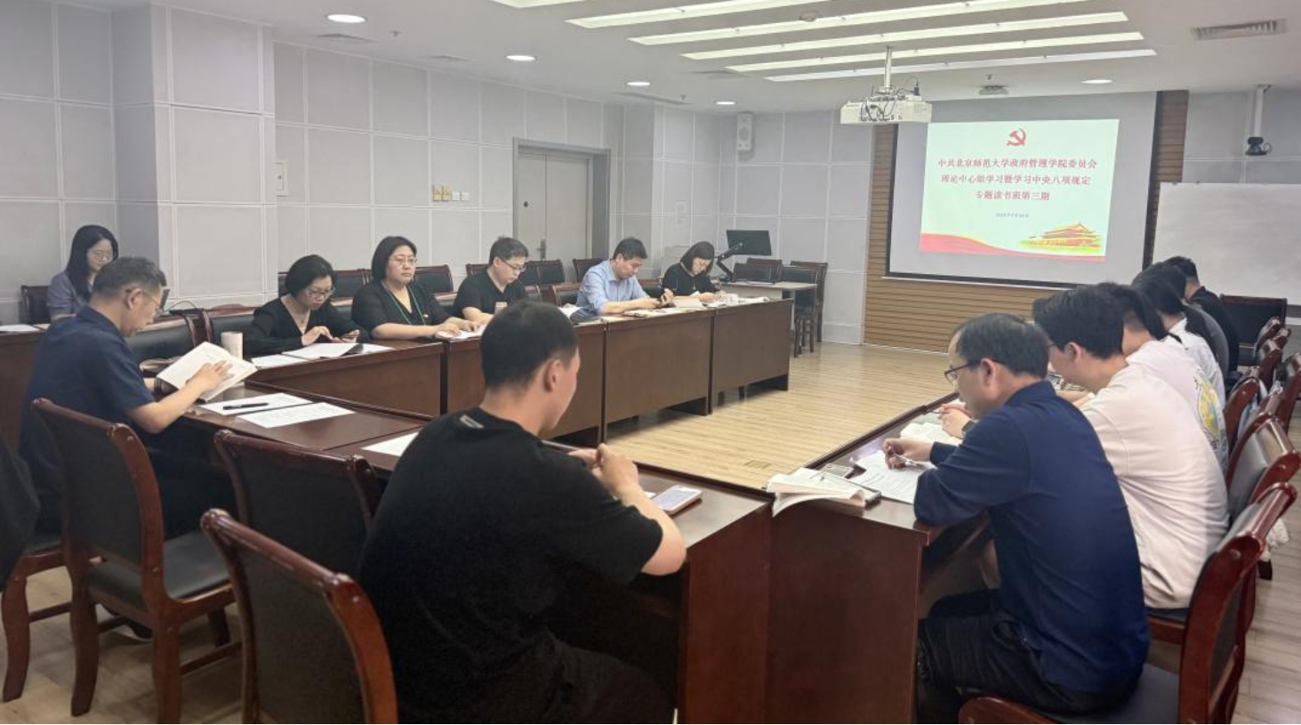随后,师生党支部书记根据学习材料,并结合支部工作进行交流研讨。员工第一党支部书记毕雪晴表示,从党和国家事业发展的宏观维度看,党的严明纪律和优良作风是凝聚党心民心的政治优势,必须一以贯之坚持和发扬;从践行党的根本宗旨的本质要求看,作风问题的核心是党同人民群众的血肉联系,党员同志要扎根群众,通过实践服务践行宗旨;从党员队伍建设的微观视角看,每一名党员同志都应坚定理想信念,在小事小节之中锤炼作风。员工第二党支部书记胡竞予指出,各员工党支部书记在加强作风建设中应做到“三个带头”。一是要带头做理论学习的深耕者,带领支部成员逐句钻研中央八项规定背后的为民情怀;二是要带头做服务同学的实干家,常态化开展谈心谈话、帮扶解困工作,把支部同志的急难愁盼放在心上;三是要带头做廉洁自律的明白人,在评奖评优、发展党员等敏感事项中,坚持原则不动摇、执行标准不走样、履行程序不变通。员工第三党支部书记段永康表示,支部在学习教育过程中重点开展了以下三项工作。一是强化理论学习,深刻理解关于党的作风建设的重要论述,增强为人民服务的自觉性和坚定性。二是开展"我为同学办实事"活动,深入了解支部成员的学习、生活需求,针对性地开展帮扶活动,解决实际问题。三是加强作风自查,开展批评与自我批评,确保支部成员始终保持密切联系群众的优良作风。教工第一党支部书记王华春表示,加强党的作风建设是一项需要常抓不懈的重要政治任务,要系统深入地研读《关于加强党的作风建设论述摘编》,准确把握其中的核心要义和实践要求,将理论学习成果转化为改进作风的实际行动。教工第二党支部书记肖明表示,开展学习中央八项规定精神主题教育是一项系统工程,必须坚持"学、知、明、守"四位一体推进。为提高学习成效,教工第二党支部创新学习形式,通过参观历史展览馆、举办党史知识竞赛等多样化活动,切实推动主题教育走深走实。