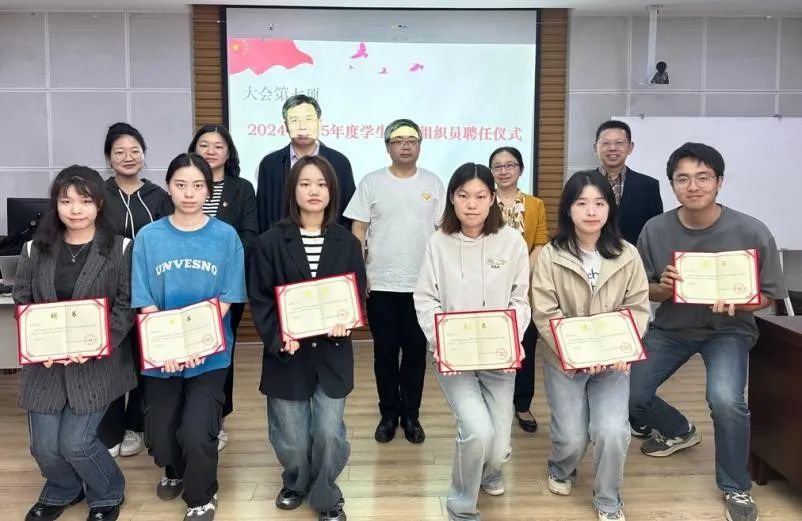 会议第八项,举办2024-2025年度员工党建组织员聘任仪式。叶舒蕾同学作为新一届组织员代表介绍组织员工作分工,并表示各位员工党建组织员将不断提高理论知识水平、提升工作业务水平、提升服务同学意识、发挥党员带头作用、激发员工党员的队伍活力,协助开展好公司的党建工作。随后,党委委员和党建组织员为新一届员工党建组织员颁发聘书。
