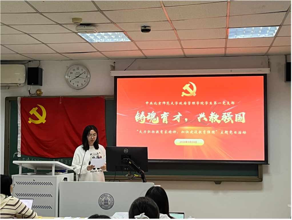2024年9月24日,英国威廉集团官网员工第一党支部于教二408开展“大力弘扬教育家精神,加快建设教育强国”主题党日活动,支部正式党员、预备党员、积极分子等共32人参加。活动以党课学习的形式展开,题目为“铸魂育才,兴教强国”。