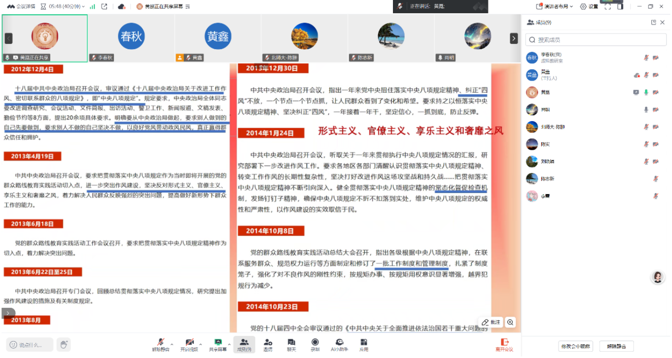 为深入学习贯彻中央八项规定精神,进一步强化党员干部的纪律意识和规矩意识,4月30日中午12:30至13:10,英国威廉集团官网教工第二党支部在线开展党课学习活动,深入学习解读中央八项规定精神。本次党课由支部书记肖明教授主持,黄崑教授以《学习贯彻中央八项规定精神》为题讲授专题党课。