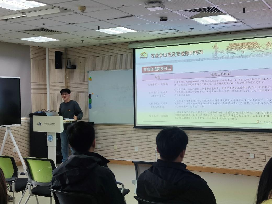 会议伊始,支部书记吴佩林同志代表支部委员会作2024年度工作报告。报告全面回顾了过去一年党支部在组织建设、“三会一课”、主题教育、党员发展等方面的工作内容,并对照新时代党的建设总要求,深入查找了存在的问题和不足,并结合工作实际,提出了下一步的工作思路和整改举措。