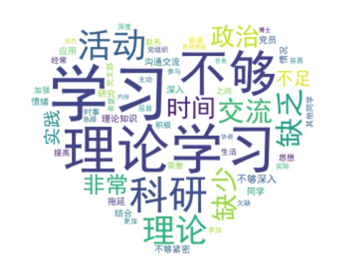 总体而言,大家的共性问题包括理论学习不够深入、不够系统;参与党日活动不够积极、缺少思考;在科研学习过程中容易拖延、有畏难情绪;与党员同志沟通交流不主动、不紧密等。