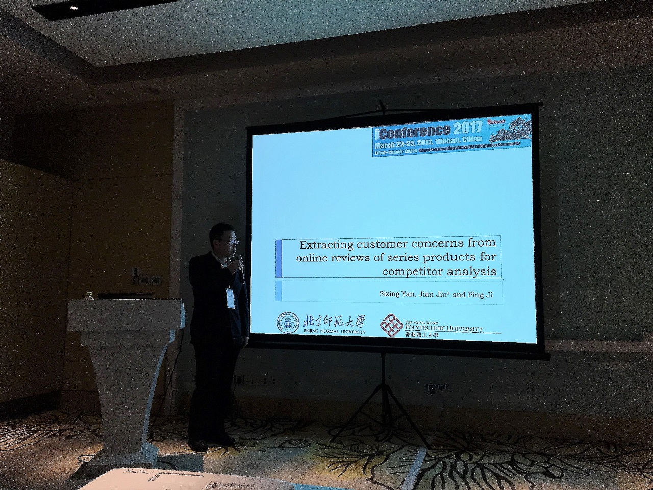 3月23日下午,靳健在“web数据分析”分论坛做了题目为Extracting customer concerns from online reviews of series products for competitor analysis的30分钟会议发言,介绍相关研究情况,吸引了不少听众的兴趣,做了丰富的交流。3月25日上午,靳健在“用户信息行为”分论坛中做20分钟报告,介绍了公司在Reviewer Recommendation方面的研究情况。