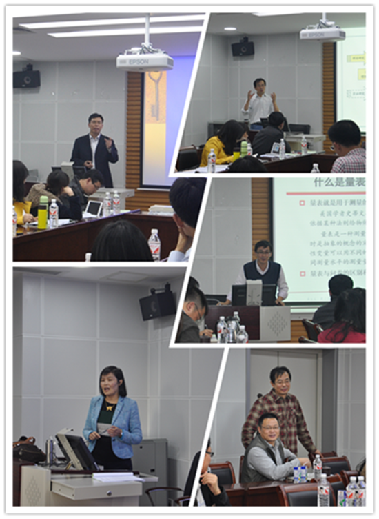 研讨会包括四讲,历时三天。10月24日晚,王建民教授以“论文选题与研究方法:经验与思考”拉开帷幕,结合多年思考和研究,提出博士论文“选题、方法和规范三大关”的观点,强调了公司和公司对博士学位论文研究、写作、匿名评审和答辩的要求,以及公司对博士生发表论文的规定。随后,于海波教授进行了题为“管理研究:构建美丽的故事”的演讲,结合实例,生动、详细地介绍了实证研究的各个步骤和核心内容。10月25日上午,柯江林副教授报告了“问卷与量表的选择与开发”思路、方法与程序。25日晚上,王建民教授和柯江林副教授结合研究实例与博士生进行了深入讨论。10月26日上午,王颖副教授讲解了“论文选题与研究建构”核心内容。四个报告直接针对博士论文研究、写作的实际问题,简明扼要,深入浅出,有高度的实用性。王建民教授和李永瑞副教授全程点评、简要概括,促进互动交流。