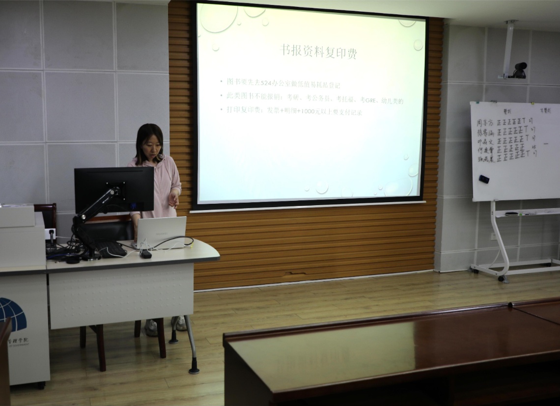 随后,陆老师详细讲解了经费报销的具体流程,包括劳务费、设备购置费、书报资料复印费等项目的报销要求,并重点说明了差旅费和住宿费的报销细则。讲解过程中,陆老师展示了各类报销所需的发票、订单明细等材料,帮助同学们更直观地掌握报销要点。此外,陆老师还对低值易耗品的登记流程进行了介绍,并提醒大家注意报销时间,避免逾期。