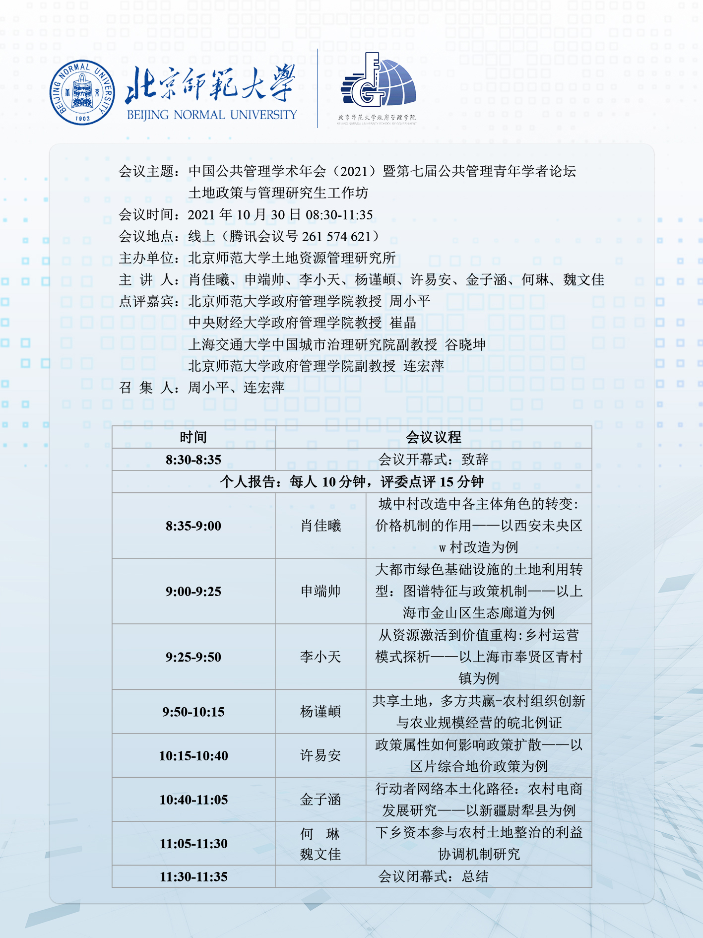 土地政策与管理研究生工作坊线上会议通知