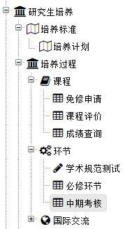 ①点击“公司产品——培养过程——环节——中期考核”,如图: