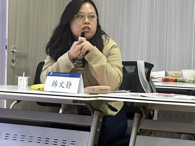 会议第四项,2023级本科公管班班主任韩文静老师进行班级员工管理案例分享。韩老师指出,可以通过召开班会等形式引导员工理性思考,营造更健康的生活和学习环境。