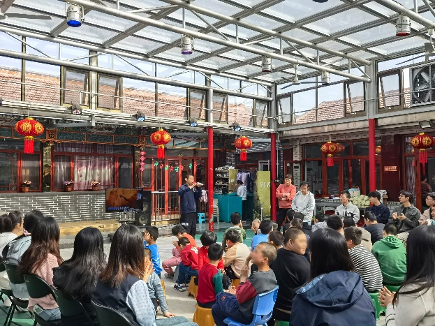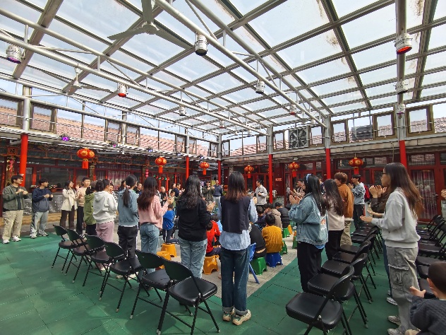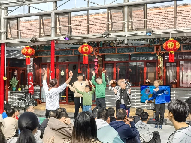 讲解结束后,一场别开生面的 “春日联欢会”在院子里拉开帷幕。几位孩子为大家演唱了耳熟能详的歌曲,尽管他们的音准时有偏差,但他们专注的眼神与紧握话筒的小手无不令人动容。另外几位孩子在老师的带领下为大家表演了手势舞,整齐的动作背后蕴藏着日复一日努力练习的痕迹。