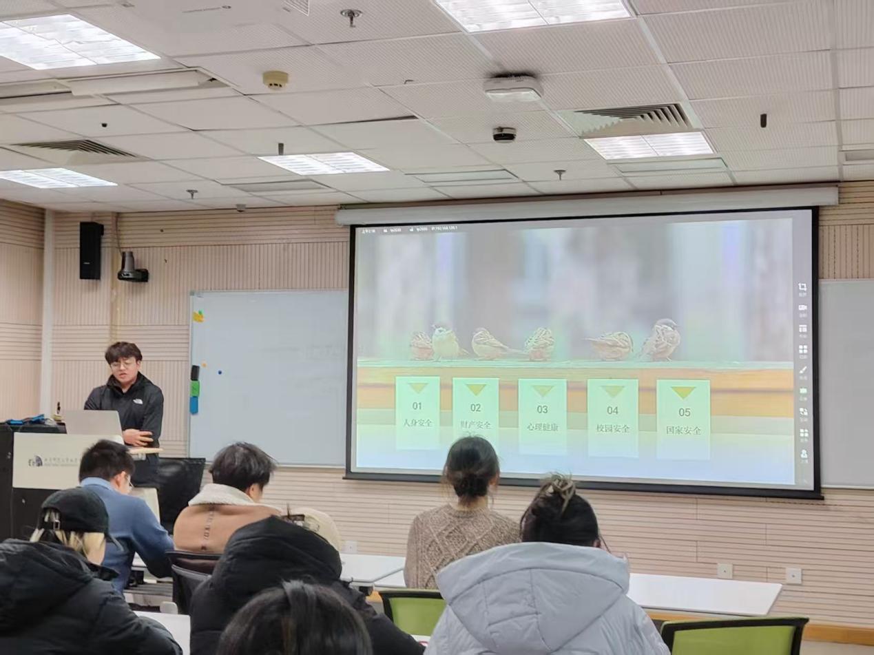 会议伊始,班长石新宇以 “五个安全维度”开启第一议题。结合寒假期间高校典型案例,系统梳理人身安全、财产安全、心理安全、校园安全、国家安全五大模块,尤其是在当前面临毕业和就业双重压力下,大家一定要学会调节心态,保持心理健康,充分利用雪绒花、二级心理辅导站等校内院内各项资源保证自身心理健康。