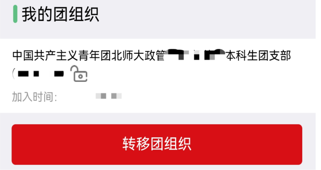团组织通过后,团员手机端“青春北京”公众号——右下方菜单“线上系统”——“北京共青团系统”——“我的”——“我的组织”显示类似下图,转入流程全部完成。