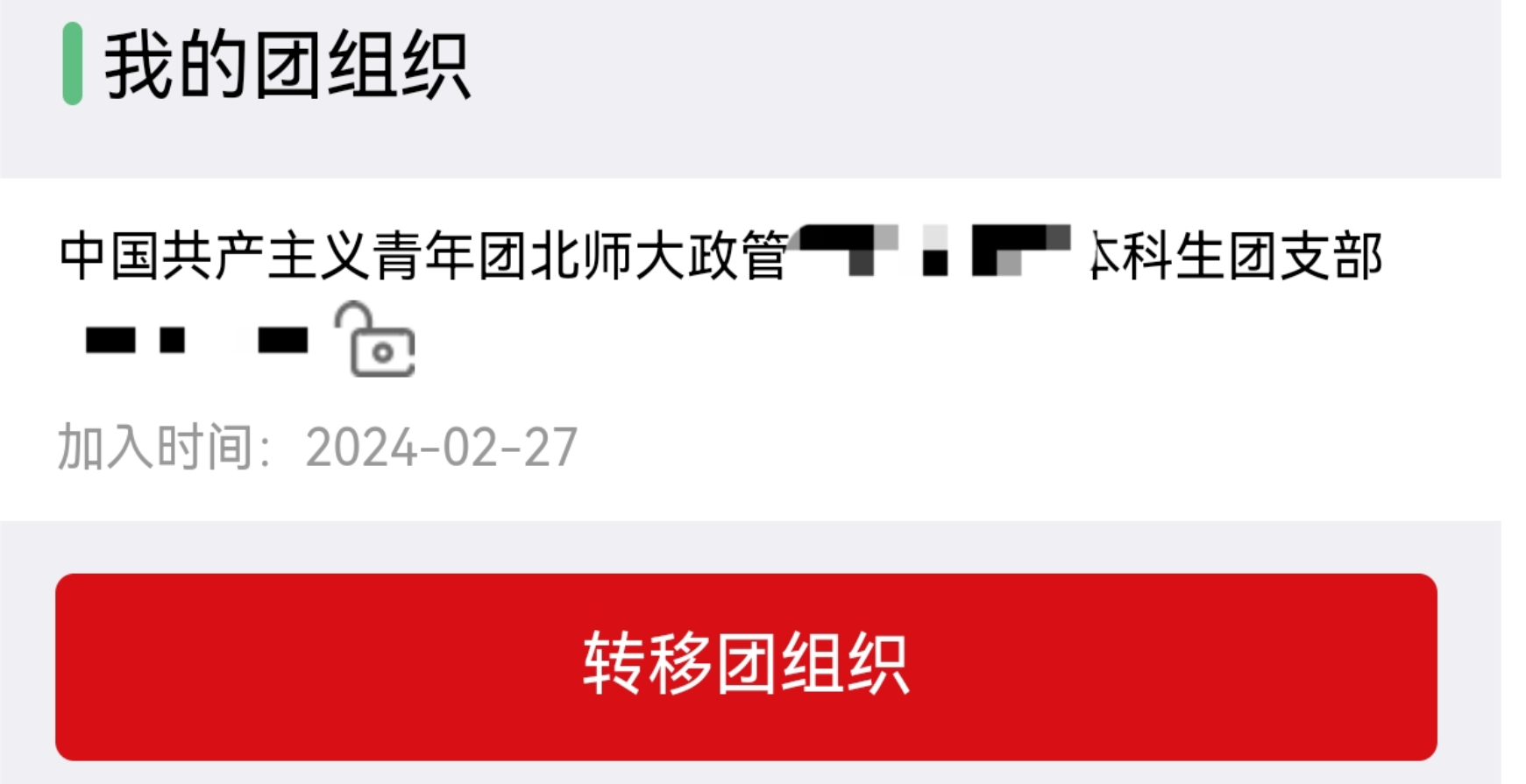 3.登录后(可能已经默认登录)进入【我的组织】页面,点击【转移团组织】,选择【升学】