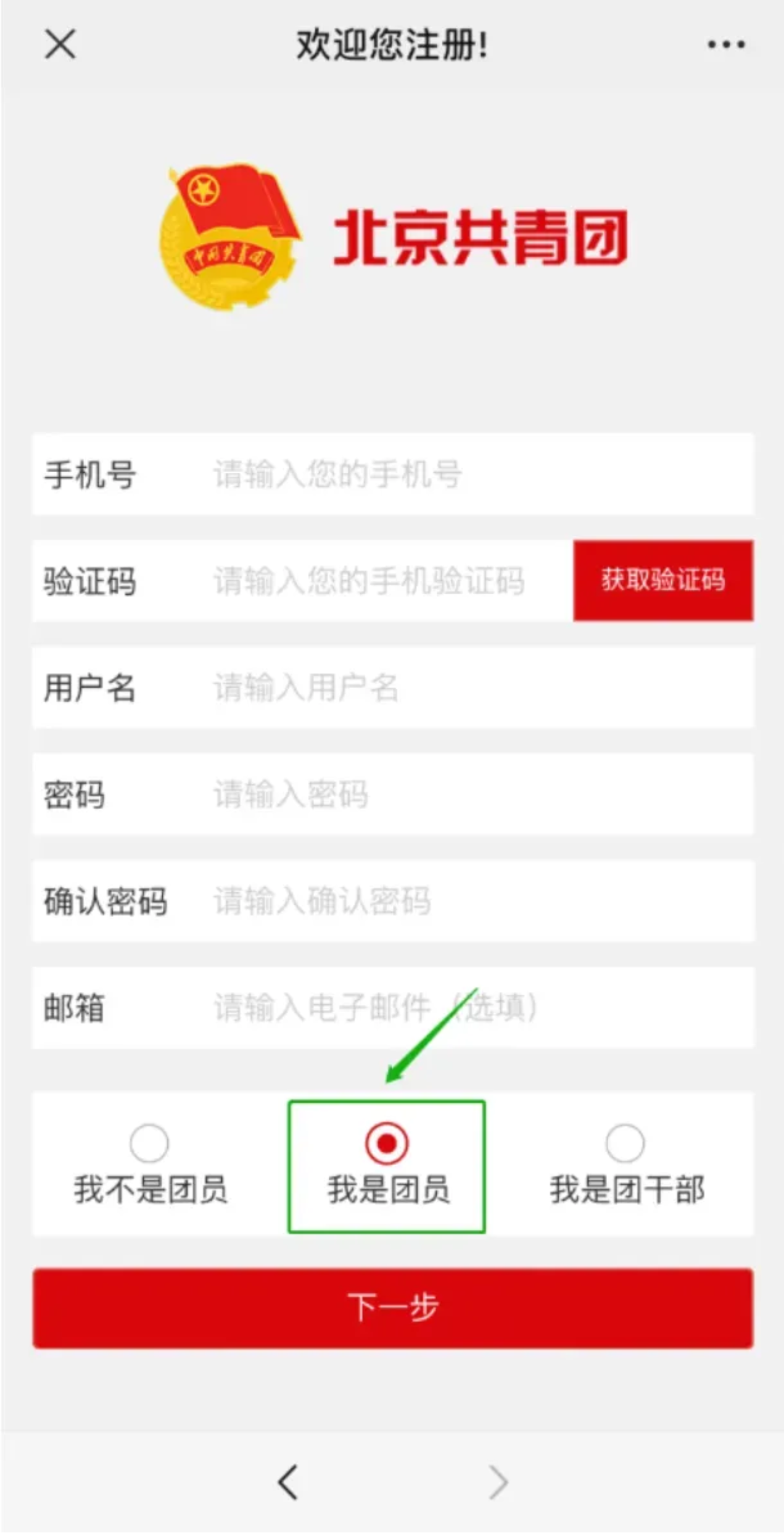 (3)用户按照实际情况选择身份:“我是团员”“我是团干部”“我不是团员”。