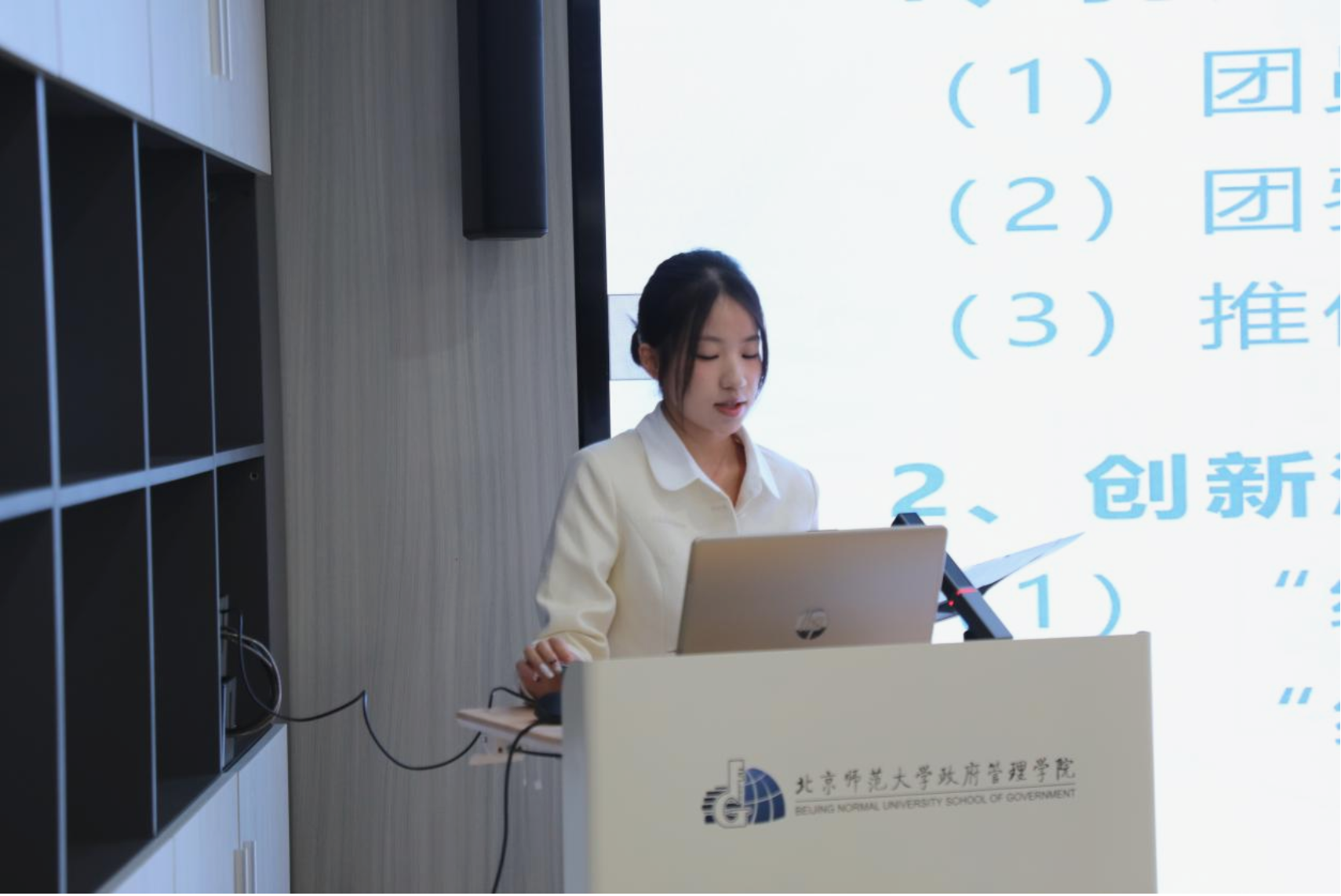 团支书贾智淇从团支部标识,团支部分工与团课学习展示了22信管本团支部的的工作。贾智淇同学首先介绍了22信管本团支部的标识,简洁大方的整体设计与图形线条的完美组合,展示了支部的学术严谨和社会责任感。在支部建设中,22信管本团支部分工合作、互助共赢,充分利用多种学习资源,如地域场馆、校际宣讲等。未来,22信管本团支部继续紧跟时事开展主题学习,多元化地完善支部建设。