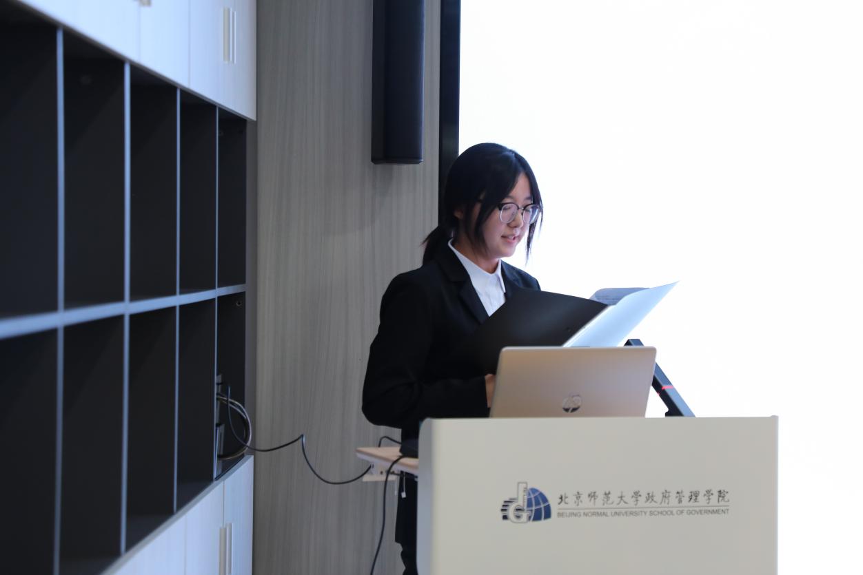 团支书芦香宇从团支部标识,理论学习,主题团日活动三个方面展示了22公管本团支部的工作。芦香宇同学通过团支部标识中各组成元素讲述围绕知识与责任的支部内涵。22公管本团支部拥有多样化的理论学习方式与实践活动,落实“三会两制一课”制度。在主题团日活动中,展开组织生活会、“读书会”系列活动,丰富了同学们的知识储备,也增强了团队的凝聚力。