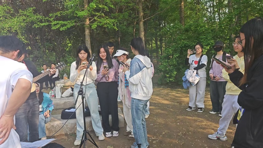 活动期间,团员们偶遇公园乐队表演,《如愿》旋律响起时,自发形成的大合唱成为春日里最动人的青春和声。数位团员主动登台献唱,用歌声传递青年心声,赢得游客阵阵掌声,展现团支部开放包容的精神面貌。