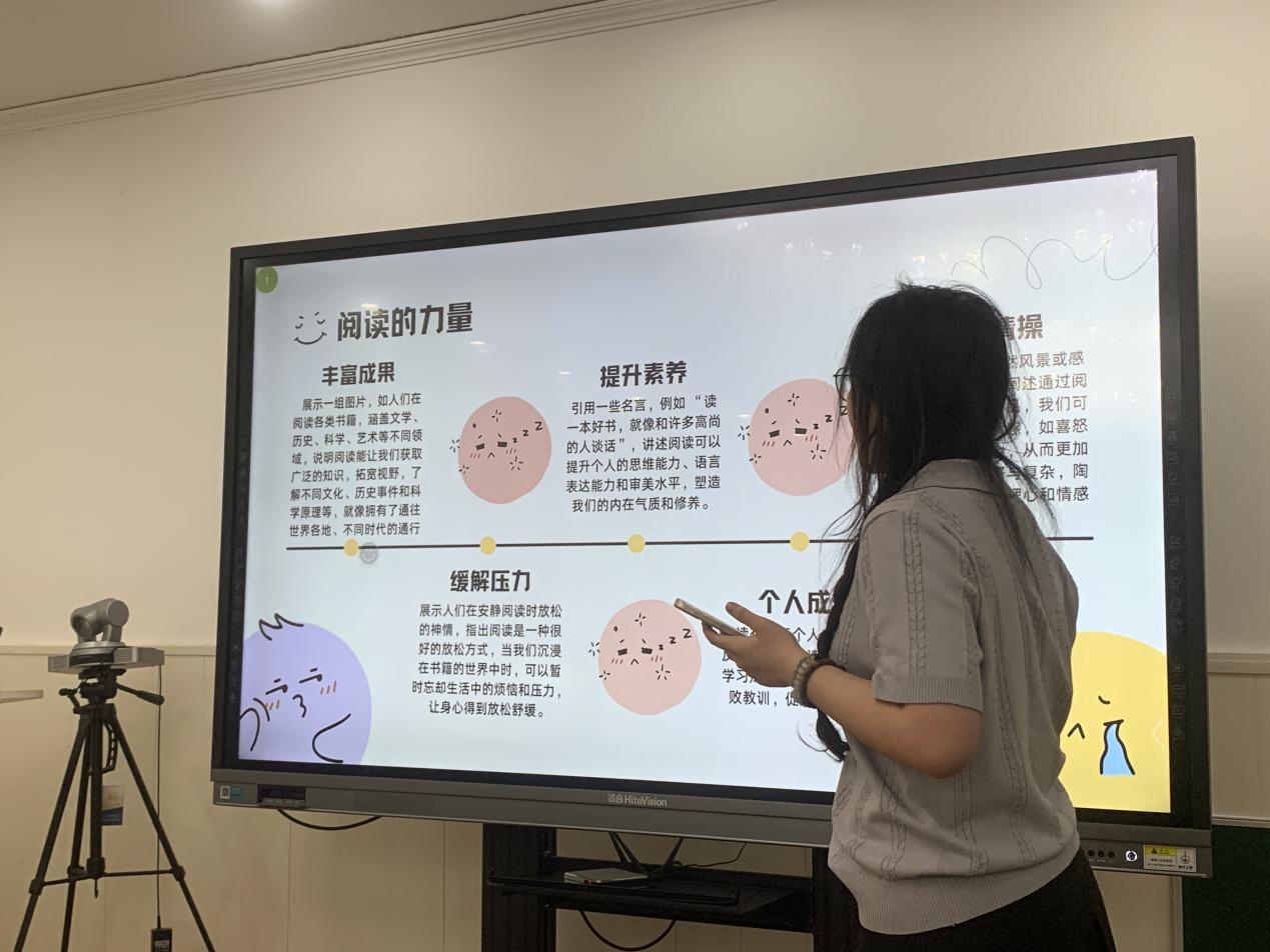 最后,芦香宇同学分享了“如何培养阅读习惯”的实用建议,包括营造舒适的阅读环境、选择适合自己的书籍以及制定合理的阅读计划。她鼓励同学们从点滴做起,让阅读成为生活中不可或缺的一部分。