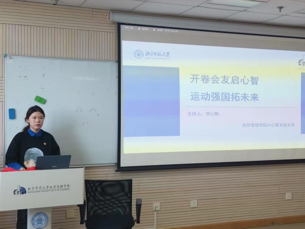在活动开场,团支书深入解读了活动背景与意义。“全民阅读”国家战略、“健康中国2030”规划纲要的提出,以及北师大“五育并举”育人理念的推行,为本次活动奠定了坚实基础。随后的“开卷会友・启心智”环节将活动推向高潮。同学们积极分享近期阅读的好书。“运动强国・拓未来”环节则充满活力与激情。团支部组织21天打卡挑战,鼓励同学们记录运动数据。活动期间,同学们纷纷走出宿舍,投身到运动中,在操场、健身房挥洒汗水。