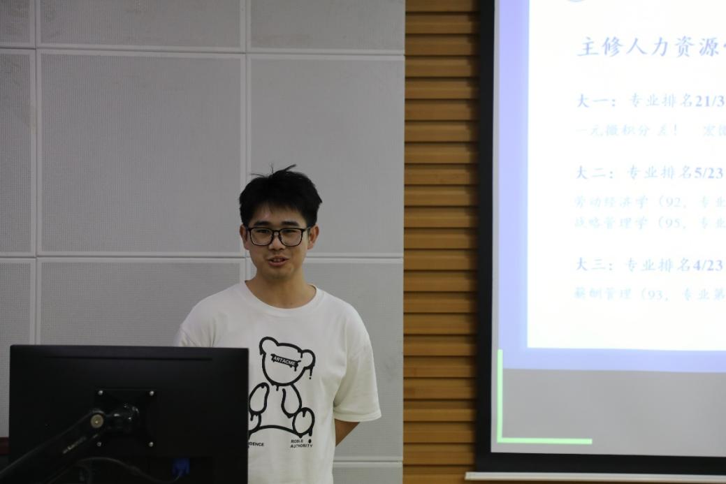 魏智蔓同学以“员工事务助理”身份现身说法,为同学们详细讲解公司“2+3”工作保研模式,即前两年留校任职积累高校行政经验,后三年免试攻读硕士学位。她结合岗位招募流程,提醒同学们关注成绩、党员身份、员工工作经历等选拔条件,同时提醒同学们在面试中要“真诚表达适配性,逻辑清晰展示职业决心”,向面试官展现自己与岗位最契合的经历与能力。
