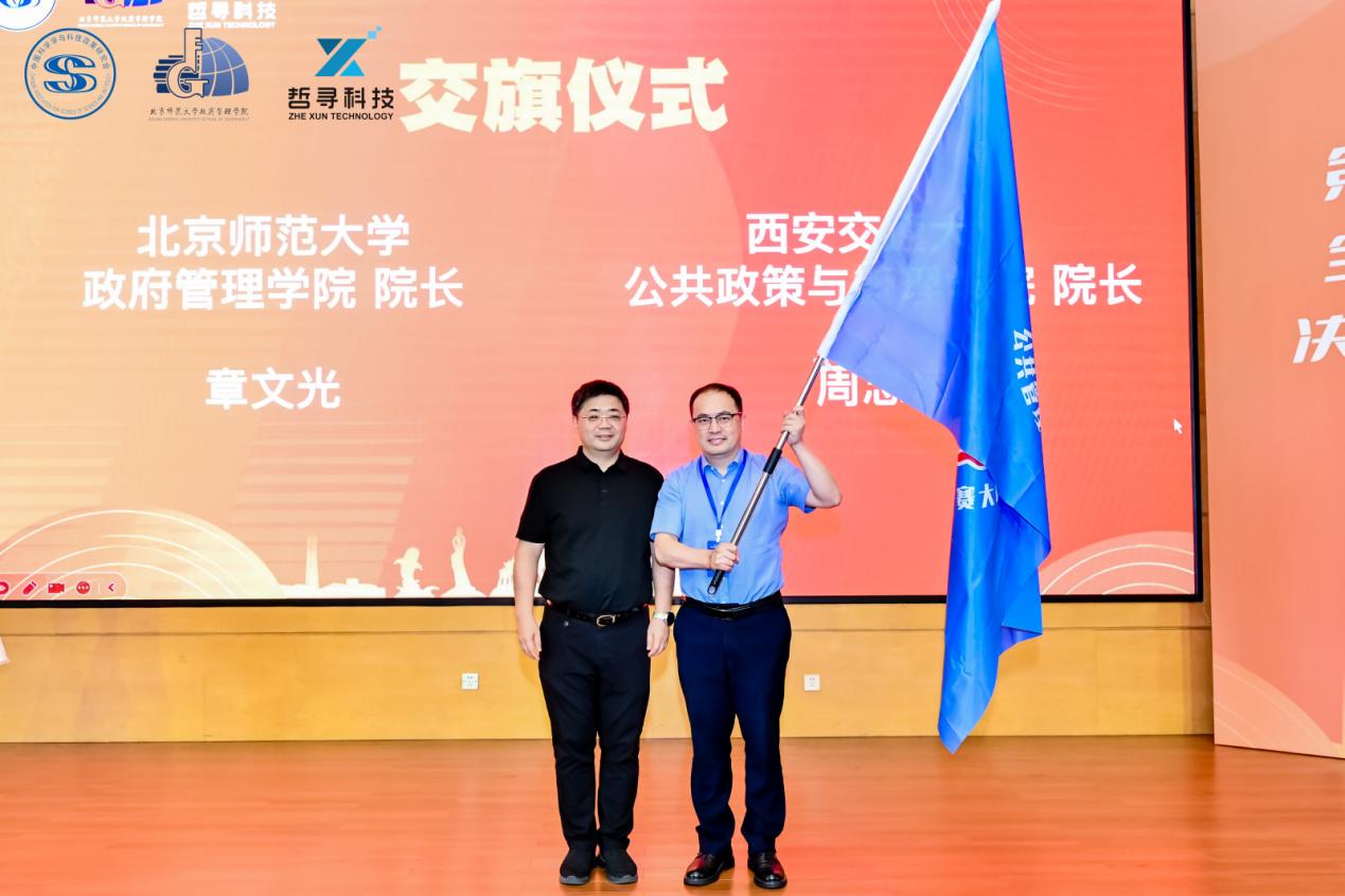 章文光、周忠良分别代表本届与下届赛事承办单位进行赛旗交接。周忠良表示将积极做好下届比赛的筹备工作,衷心希望各所高校的师生能够以大赛为契机,携手共进,共同为推动公共管理学科发展与人才培养。