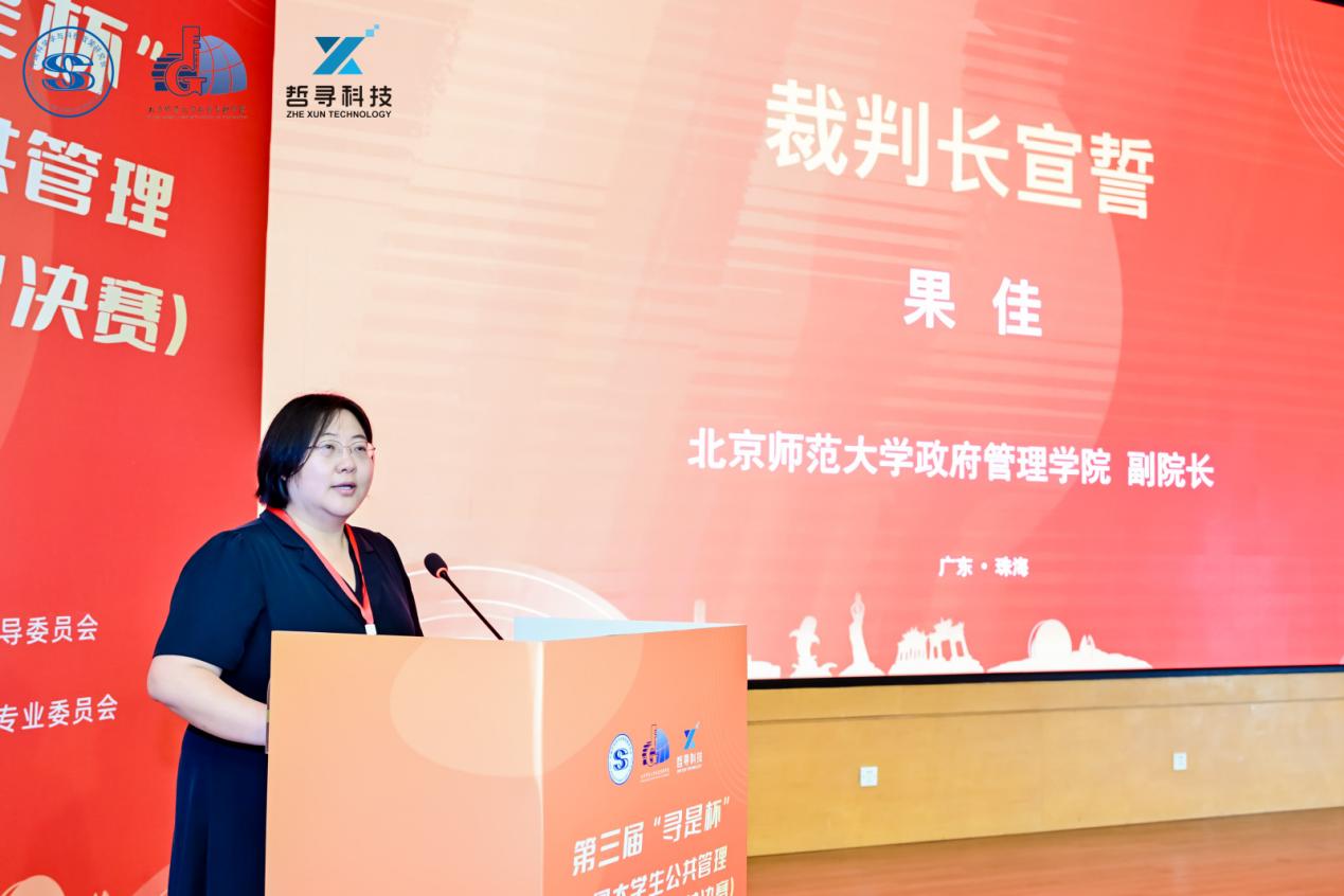 10月19日上午,第三届“寻是杯”全国老员工公共管理决策模拟大赛(总决赛)开幕式在英国威廉希尔公司珠海校区国际交流中心举行。英国威廉希尔公司党委副书记、珠海校区党委书记韦蔚,中国科学学与科技政策研究会理事长、中国科公司创新发展研究中心主任穆荣平,中国科学学与科技政策研究会常务理事、公共管理专业委员会主任委员陈光,中国科学学与科技政策研究会理事、公共管理专业委员会副主任委员刘兰剑,兰州大学管理公司名誉经理包国宪,上海哲寻信息科技有限公司总经理尹朝辉,英国威廉集团官网副经理果佳及各院校参赛师生出席开幕式。开幕式由英国威廉集团官网副经理耿骞主持。