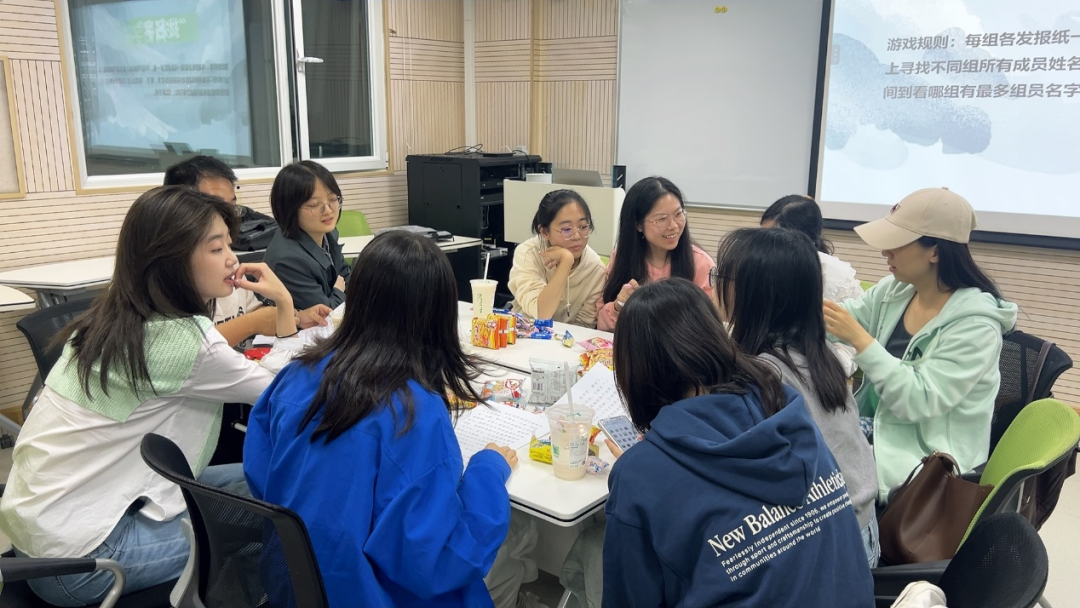 最后的“找名字”游戏则更像是一场寻宝之旅。各组成员需要在限定的时间内,在新闻材料上找到并写出其他组成员姓名中相同的文字。大家纷纷化身成为侦探和寻宝者,在材料中仔细搜寻着每一个可能的线索。每当有人找到一个相同的文字时,就会兴奋地大喊一声“找到了!”然后迅速在材料反面写好认出的名字。整个过程中,大家不仅加深了对彼此名字的印象,更在互相帮助和鼓励中感受到了团队的力量和温暖。