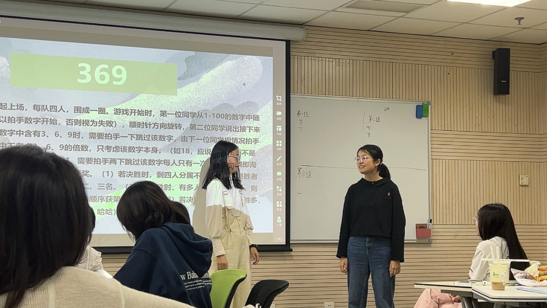 “369”数字挑战则将现场气氛推向了高潮。成员们围成一圈,轮流报数,遇到含有3、6、9的数字时需拍手跳过。一开始,大家还显得有些生疏和紧张,但随着游戏的深入,大家逐渐找到了节奏和默契。每当有人不小心犯错时,就会引来一圈人的笑声和“哎呀”声,但紧接着就是更加紧密的合作和更加专注的报数。整个游戏过程中,大家都沉浸在一种既紧张又兴奋的状态中。