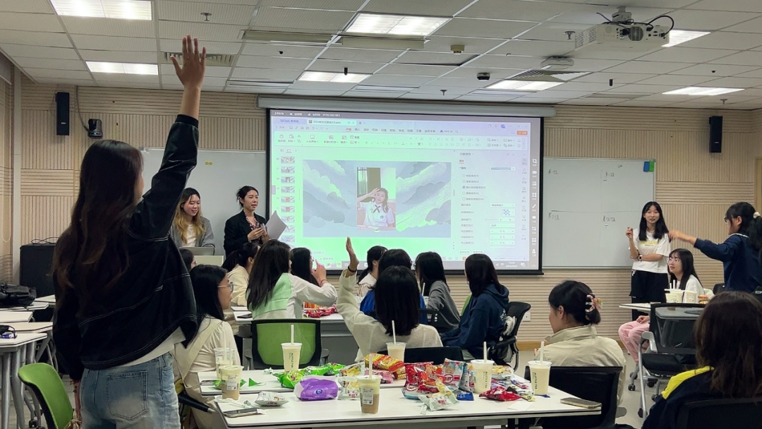 随后的“猜猜我是谁”游戏中,四组研会成员轮流上台自我介绍,他们需要通过观察与记忆,迅速识别出屏幕上展示的10张成员照片,并举手抢答说出照片对应人的名字。