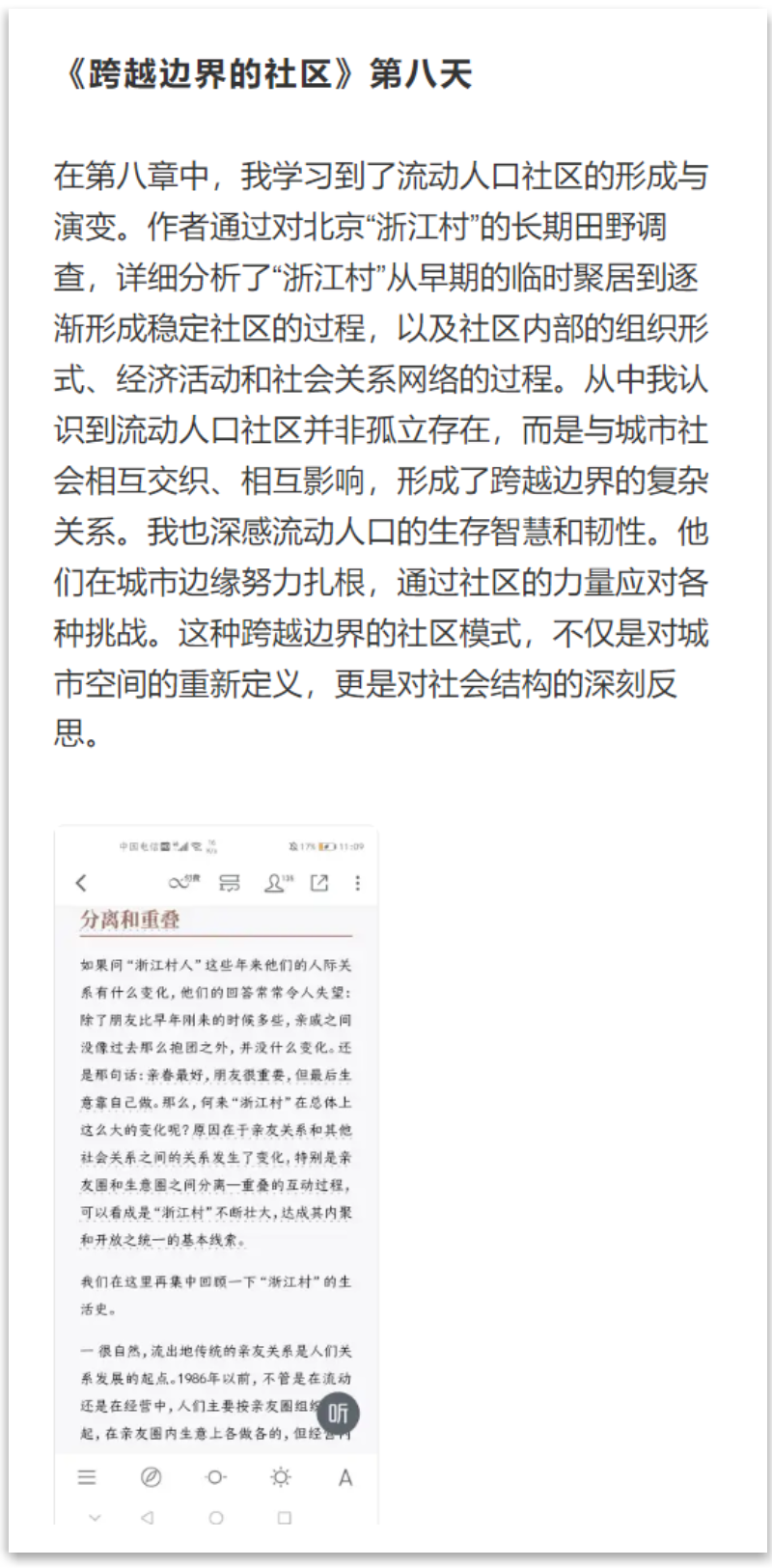 本次活动广受好评,吸引了多名同学参与其中。截至活动结束,同学们累计分享读书打卡内容203条,提交多篇读书心得。其中,一名同学以连续32天打卡的坚持展现了极高的阅读热情。活动不仅为同学们提供了交流思想的平台,更通过多样化的奖励机制激励了持续阅读与深度思考的习惯,充分彰显了政管学子对知识探索的执着追求。下面是精选的优秀打卡内容,大家一起来欣赏!