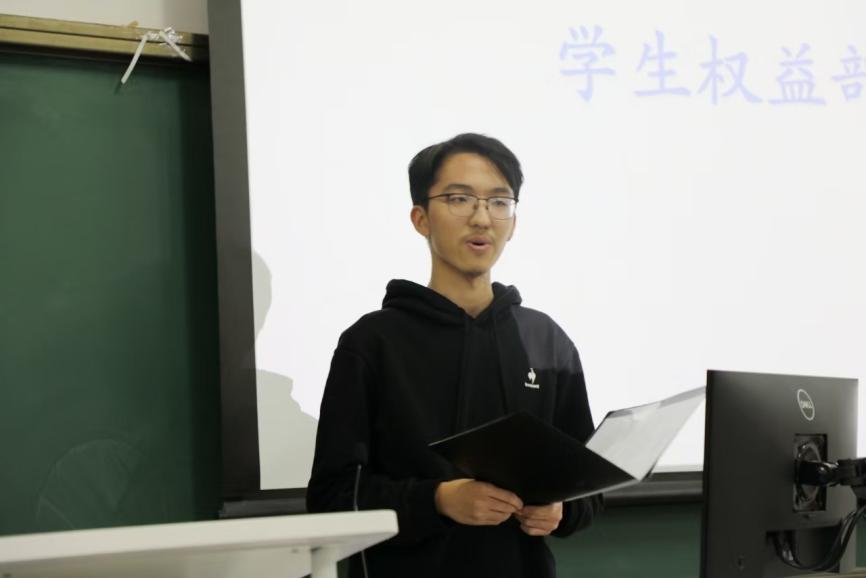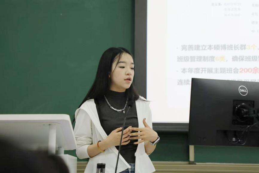 田秋蕊着眼于国家大势,响应全国学联的号召,深入学习《关于加强新时代新征程学联员工会工作的实施意见》精神,结合自身实际员工工作经验,对当下员工会提出一些新的目标与任务,表达对员工会未来发展的期待。她提出,员工会应把握青年员工工作特点,不断提升自身工作水平,提高同学满意度和社会认可度,在不断的进步中变得越来越好。