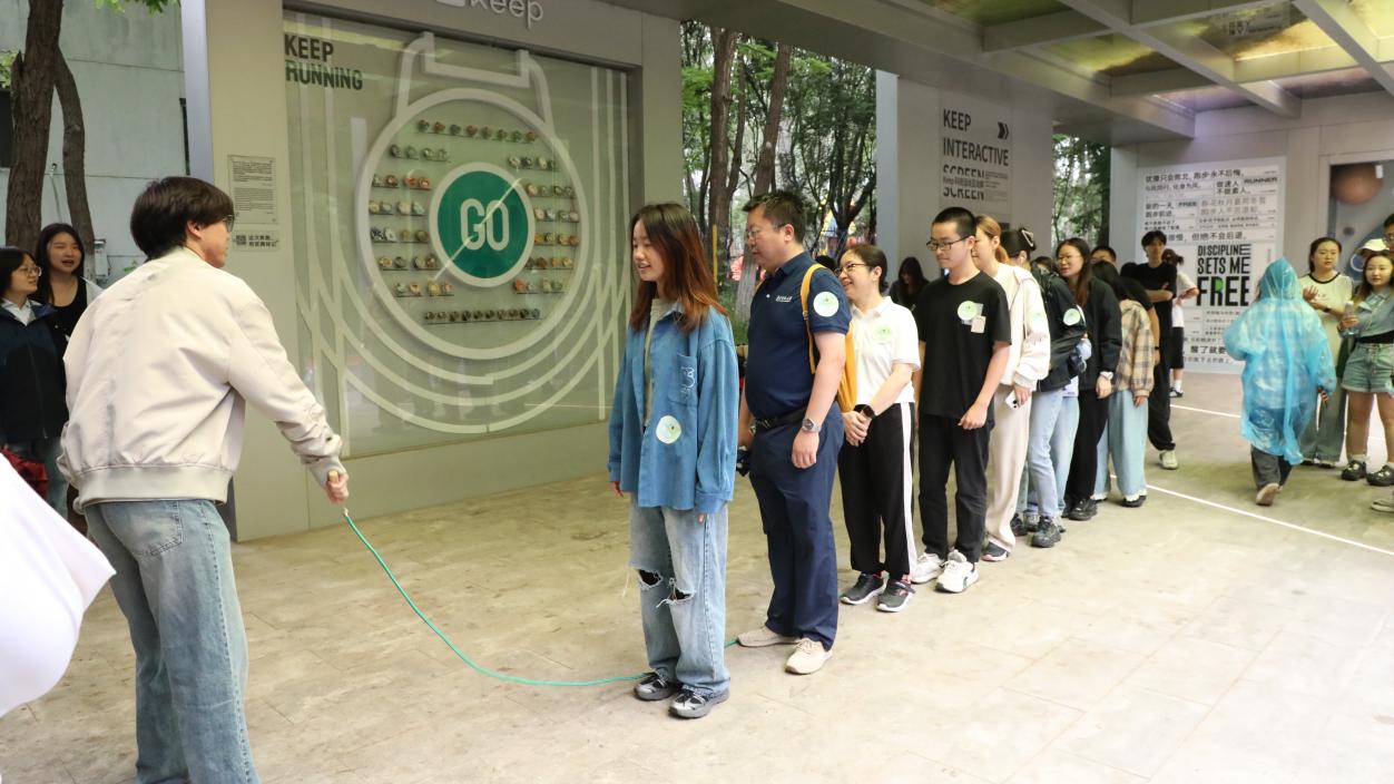 2号打卡点位于奥森公园西侧,本站的趣味打卡任务为“踢毽子”。踢毽子环节不仅考验个人技巧,更展现了团队的默契与凝聚力。各组队员轮番上阵,五彩的毽子在脚尖轻盈起落,划出一道道活力弧线。每人需完成三次踢毽任务,现场既有默契配合的欢呼,也有“抢救”毽子的欢笑,展现了老师和同学们的蓬勃朝气与团队精神。这场传统运动与现代活力的碰撞,让奥森更添一抹灵动色彩。