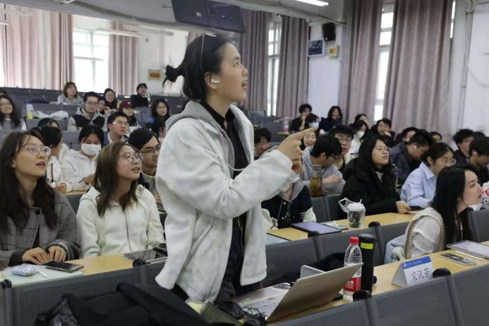 首位发言的芦香宇同学重点分享了公共事业管理专业学习以及如何丰富课余生活的经验。她提到,在专业学习方面,同学们需要在了解学科价值的基础上熟悉时政、贴近现实;在科研方面,要积极参与公司组织的科研训练,充分利用资源;在课余生活方面,她鼓励大家大胆尝试社团与员工工作,在实践中丰富自己的生活,拓宽自己的眼界。