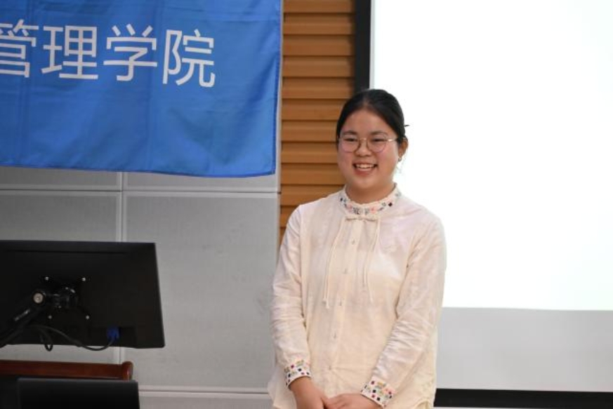 第三位上场的选手是2024级公共管理大类的杨璟月同学,她讲解的内容是频度副词。杨璟月同学运用视频进行展示,将频度副词与日常生活场景相结合,兼具知识性与趣味性。