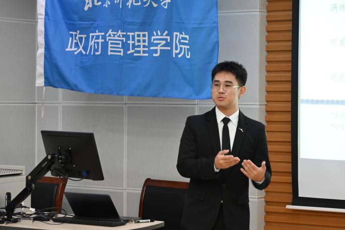 第一位上场的选手是2024级公共管理大类的安章博同学,他讲解的内容是新质生产力。安章博同学从新质生产力的提出背景、具体概念、如何发展及例题分析四个方面进行讲授。整个过程一气呵成、逻辑清晰,令人记忆尤深。