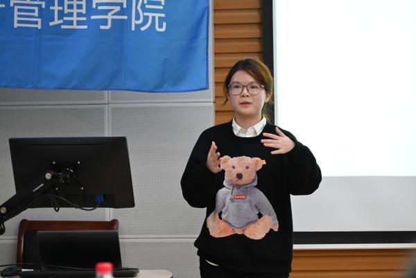 第二位上场的选手是2021级人力资源管理专业的马帅同学,他为大家深入地剖析了《声声慢·寻寻觅觅》一词。马帅同学围绕“愁”字,以“如何入愁”、“怎样写愁”、“为何而愁”三个问题串联全篇,为我们生动地呈现了这篇经典词作。