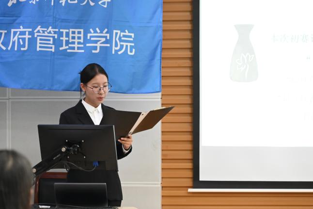 第五位上场的选手是2024级公共管理大类的纳淑越同学,她以秋意渐浓的背景自然地导入本课内容《琵琶行》。在讲授过程中,纳淑越同学侧重讲解《琵琶行》中的音乐描写所展现的作者心绪变化,授课过程亲切自然、富有文韵。