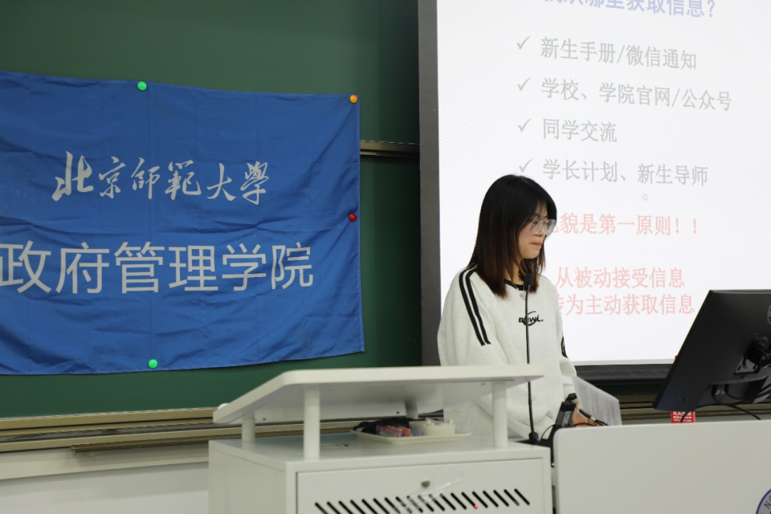 贾智淇同学从自身的学工课题出发,为同学们讲解了公司特色新生导师制度与学长计划活动的契合性。新生导师制度是师生及时反馈、双向选择的良好平台,与“学长计划”的朋辈帮扶一起,帮助新生实现入学适应。同时,贾智淇同学推荐新生在选择导师时要主动搜寻导师相关信息,综合老师的专业与研究方向等多方因素,使同学们收获颇多。