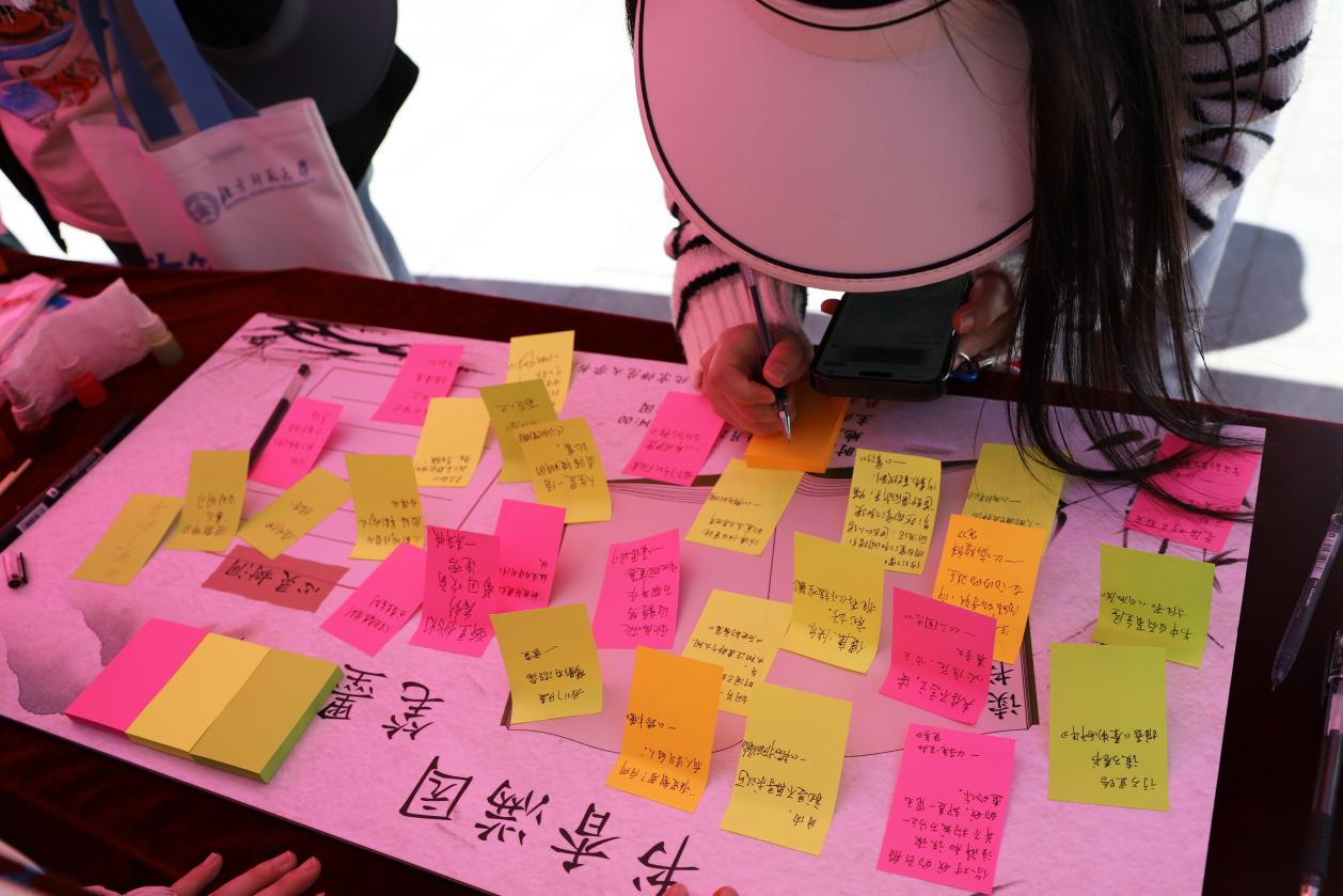 活动现场设置“书海”展板,师生们纷纷提笔写下推荐书目、摘录金句或阅读心得。一张张便利贴形成了一片“书海”,《百年孤独》《窄门》等经典作品高频亮相,思想碰撞间,阅读的热情持续升温。