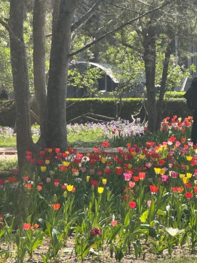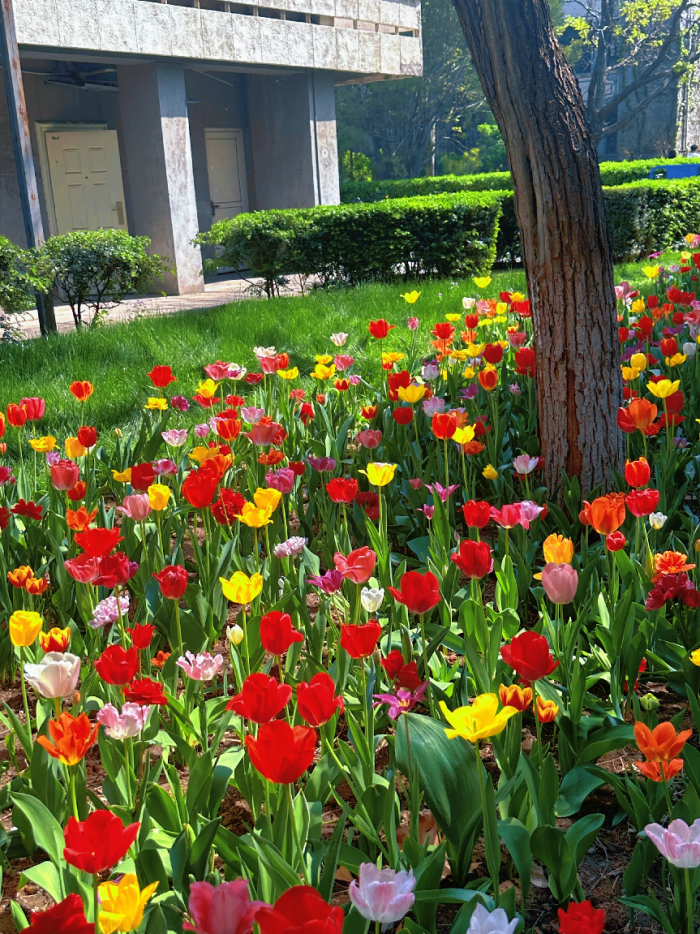 春日来信陈曦:很幸运今天在台风来临前记录下开得烂漫的郁金香 ,这在北师大也是一段佳话