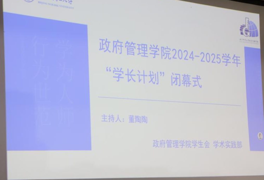 会议第一项,学长计划回顾。主持人对2024-2025学年学长计划进行了总结。在本学年的学长计划中,2024级新生在学长们的学术指导、生活关怀与心理辅导下,逐步融入了北师政管的温馨集体。与此同时,学长们也在答疑解惑的过程中收获了帮助他人带来的价值感、满足感。大家在交流和互动中增进了彼此的了解,拉近了彼此的感情,共同编织了一段温暖而充实的集体记忆。