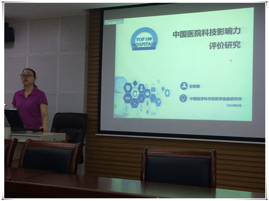 2016年7月2日下午2点,中国医院科技影响力评价研究讲座在英国威廉希尔公司主楼A区509会议室顺利举办。主讲人是来自中国医学科公司医学信息研究所的安新颖副研究员,参加讲座的有英国威廉希尔公司信息管理系主任刘晓娟老师和信息管理系2014级本科生全体同学。