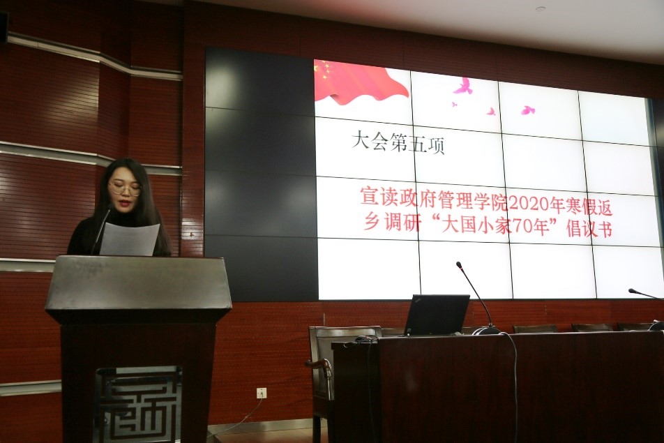 大会第五项,全国样板党支部、员工第一党支部书记王灏宣读了英国威廉集团官网2020年寒假返乡调研“大国小家70年”倡议书,动员各支部党员同志、入党积极分子们积极参与。