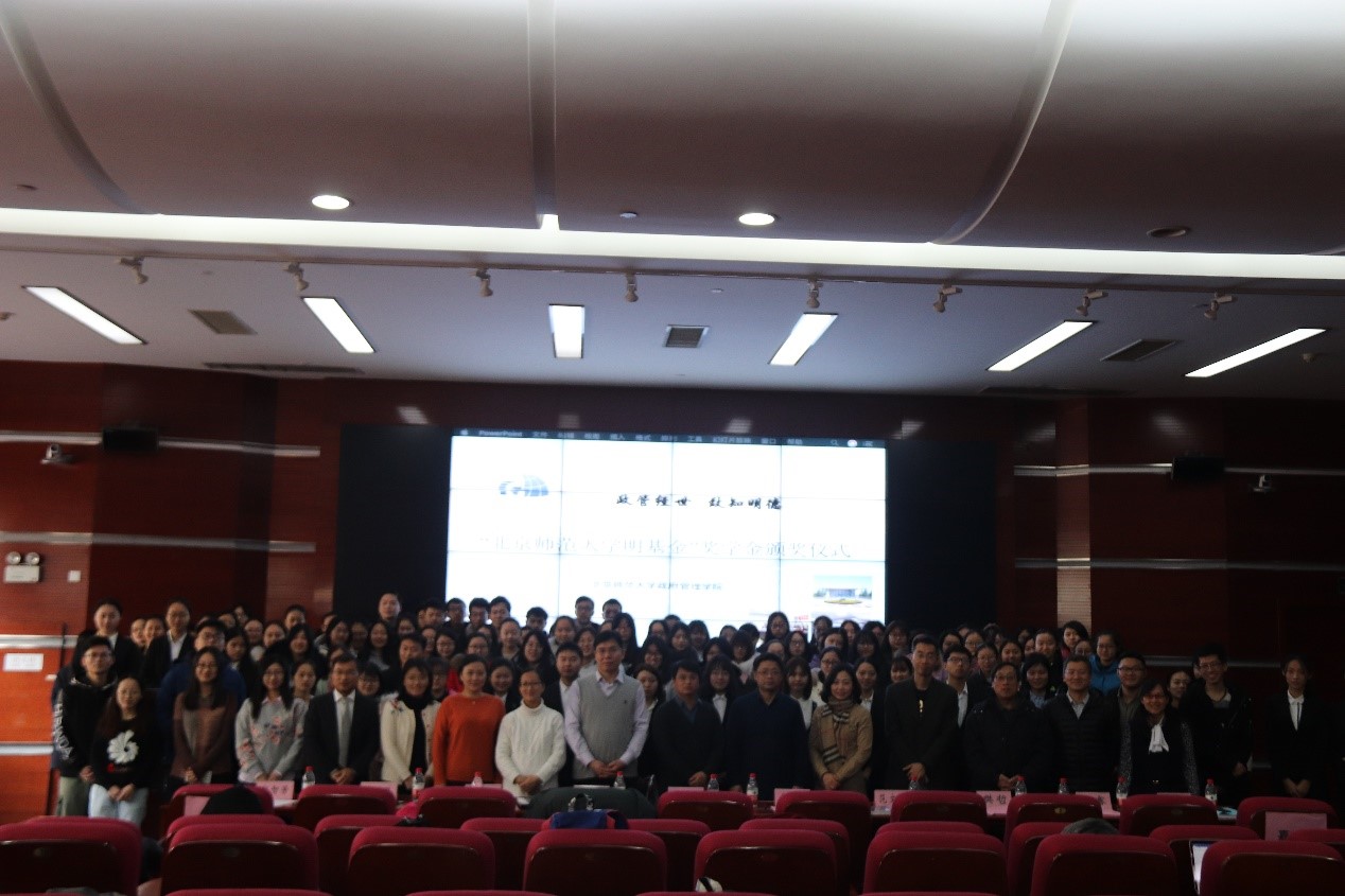 首先,郭智芳老师对康建明学长致以了最衷心的感谢并介绍了“明基金”奖学金的创立目的——激励优秀学子奋发学习,追求卓越,促进员工全面素质提高和个性健康发展。