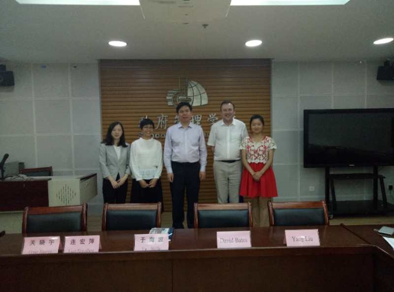 2018年5月8日下午,英国坎特伯雷大学政治与国际关系主任David Bates教授和国际合作主管刘洋博士来访公司,公司书记于海波教授、连宏萍副教授和关晓宇博士在509会议室接待了两位来宾。