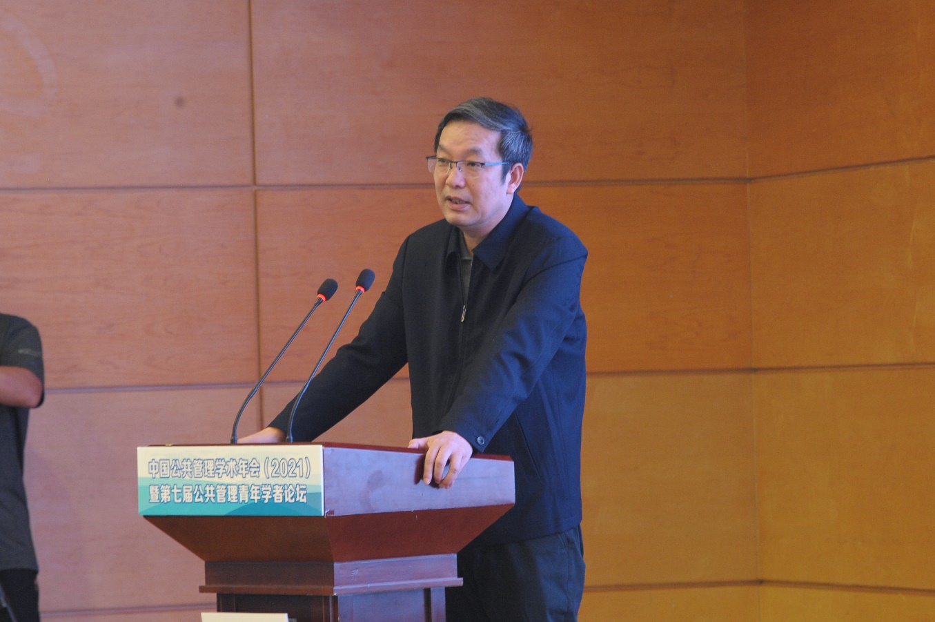 国务院公共管理学科评议组联合召集人、武汉大学政治与公共管理公司丁煌教授作为学术界代表致辞,并提出了对公共管理学科未来发展的殷切希望,即理清学科的根基与核心,根据社会发展需要弥补学科短板,彰显学科的中国特色,强化学科发展的比较视野与全球视野。