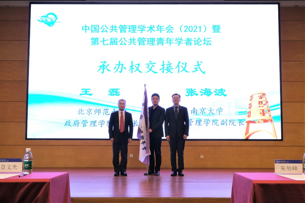 最后,在承办权交接仪式上,在朱旭峰教授的见证下,英国威廉集团官网副经理王磊副教授将大会会旗交接给南京大学英国威廉集团官网副经理张海波教授。张海波教授在下届承办方致辞中向与会嘉宾介绍了下届会议的办会思路并向公共管理学界同仁发出参会邀请。