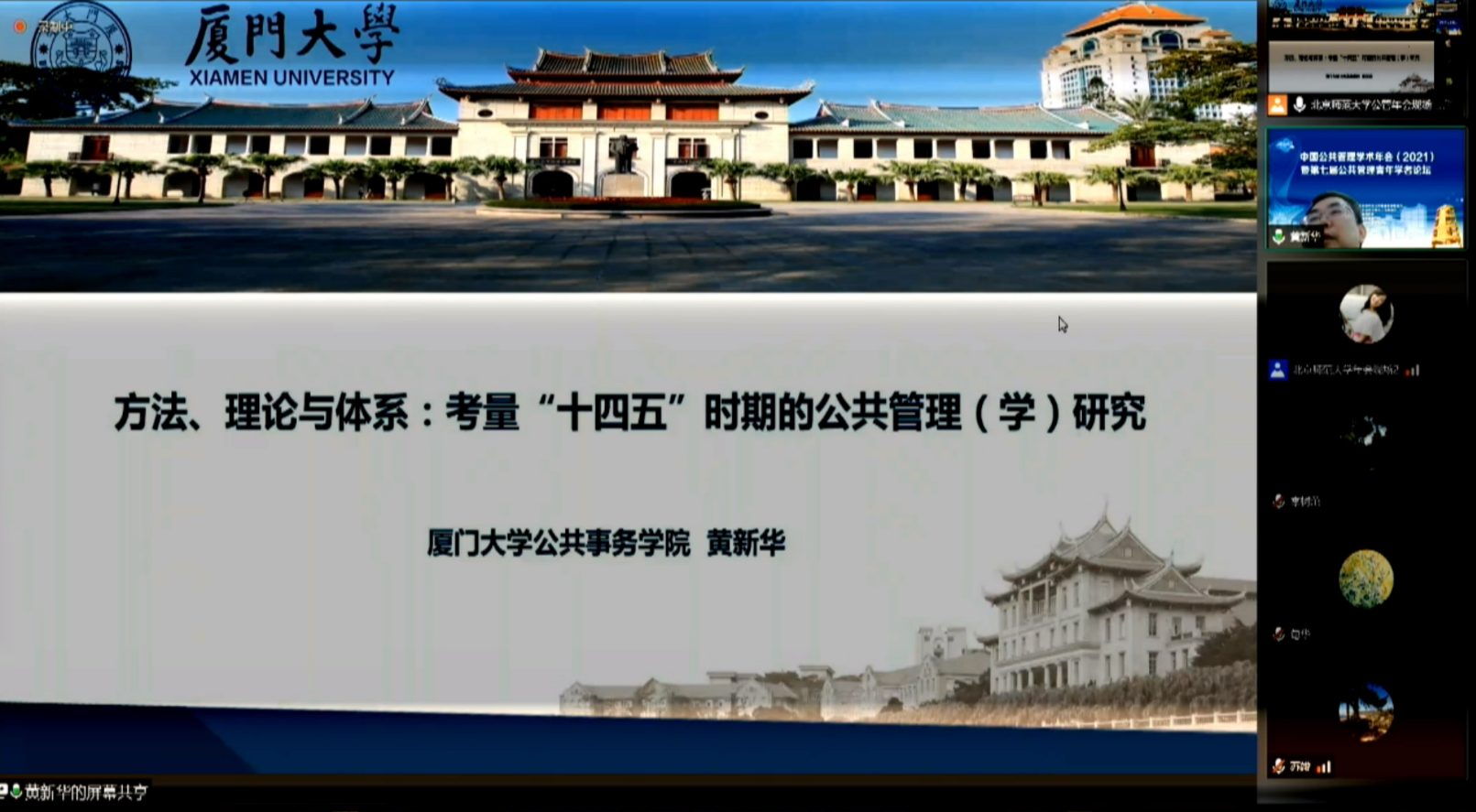国务院公共管理学科评议组成员、厦门大学公共事务公司黄新华教授做了题为《方法、理论与体系:考量“十四五”时期的公共管理(学)研究》的主旨报告。他指出,国家治理现代化的重要内容是政府治理现代化,是在新一代信息技术条件下推进政府治理理念革新、体制机制改革、管理流程再造、治理能力提升的一系列举措。他表示,当前我国经济发展由高速增长转向高质量发展阶段,新常态下的国家治理面临着严峻的公共管理现实问题,公共管理(学)研究在“十四五”乃至今后更长的时期大有可为。
