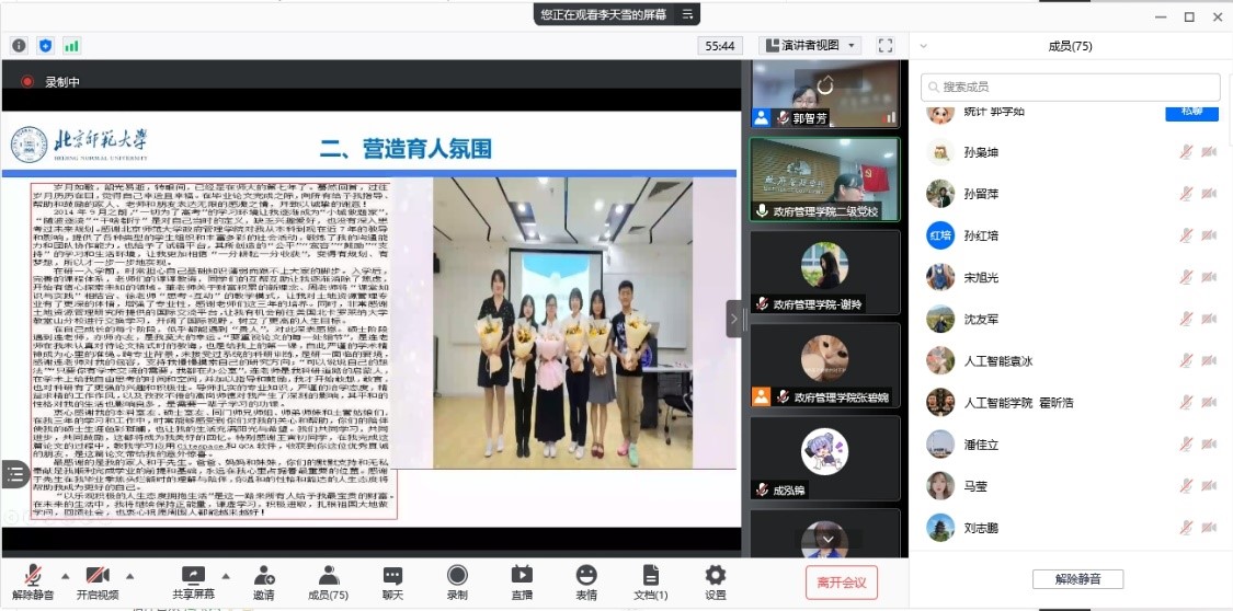 最后,公司党委书记于海波总结,感谢孙红培副书记、各位老师的认真学习,肯定了郭智芳老师深入浅出的党课讲解,强调了高校建立“三全育人”体制机制的重要意义,未来将进一步认真落实立德树人的根本任务,凝聚建设“综合性、研究型、教师教育领先的中国特色世界一流大学”的思想共识和行动合力。
