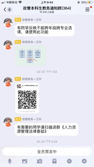 我本学期担任王洛忠老师的《人力资源法律基础》课程的助教。特殊时期,这门课程像往日校园上课铃响一样顺利开课了。第一次采用网络直播的方式参与课程,通过线上沟通的方式组织大家参加学习,我也拥有了与众不同的助教体验。